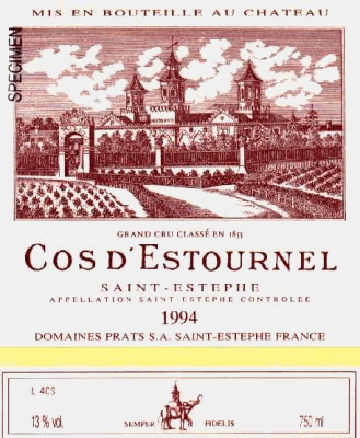 History: "Cos", in a regional dialect, means "hill". In 1820, Louis Gaspard D'Estournel constructed the oriental cellars, chateau, and vineyards. In 1855 it was classified a second growth. Ownership of the Chateau has changed hands approximately every 30 years until 1917 when Fernand Ginestet (Bruno Prats maternal grandfather) bought it. It was subsequently and until very recently owned by Bruno Prats. Prats sold the property in late 1998 to the Bernard Taillan group and four Argentine businessmen.